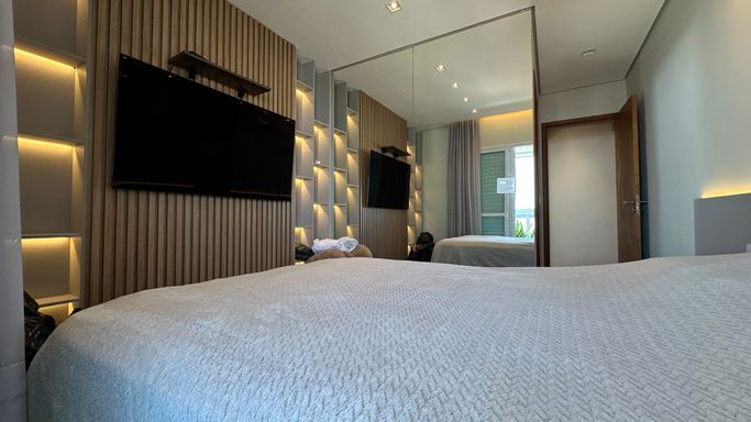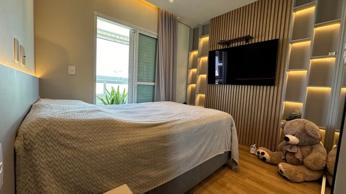 * 2 dormitórios, sendo 1 suíte, ambos com móveis planejados que garantem organização e praticidade.