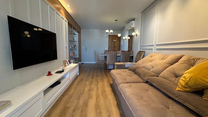 * Sala ampla para dois ambientes, perfeita para receber amigos e família.