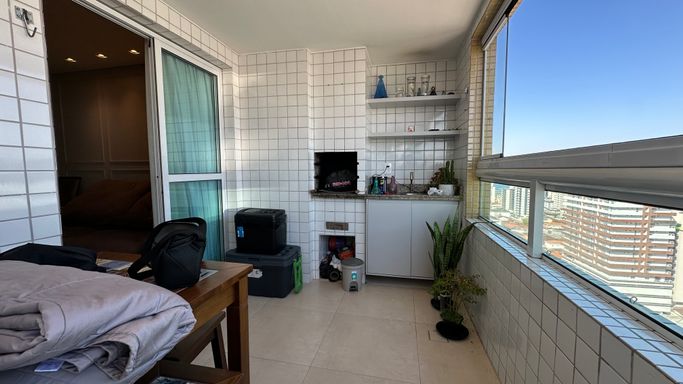 * Varanda gourmet com fechamento em vidro, ideal para relaxar e aproveitar a vista em qualquer estação do ano.
