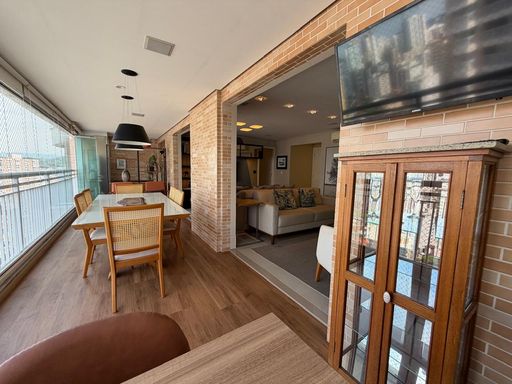 * Varanda Gourmet Espetacular: Grande, fechada com vidro (sistema reiki) e com uma vista livre deslumbrante. Conta com persianas modernas para controle total da luminosidade e privacidade.