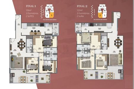 Com 122 m² de área útil distribuídos em 3 dormitórios sendo 2 suítes, 1 banheiro social, sala para 2 ambientes, sacada gourmet, cozinha, área de serviço e 3 vagas de garagem.