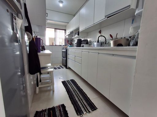 Ambientes sociais aconchegantes: sala de estar, sala de TV e sala de jantar integradas ao conforto de uma cozinha planejada e banheiro decorado